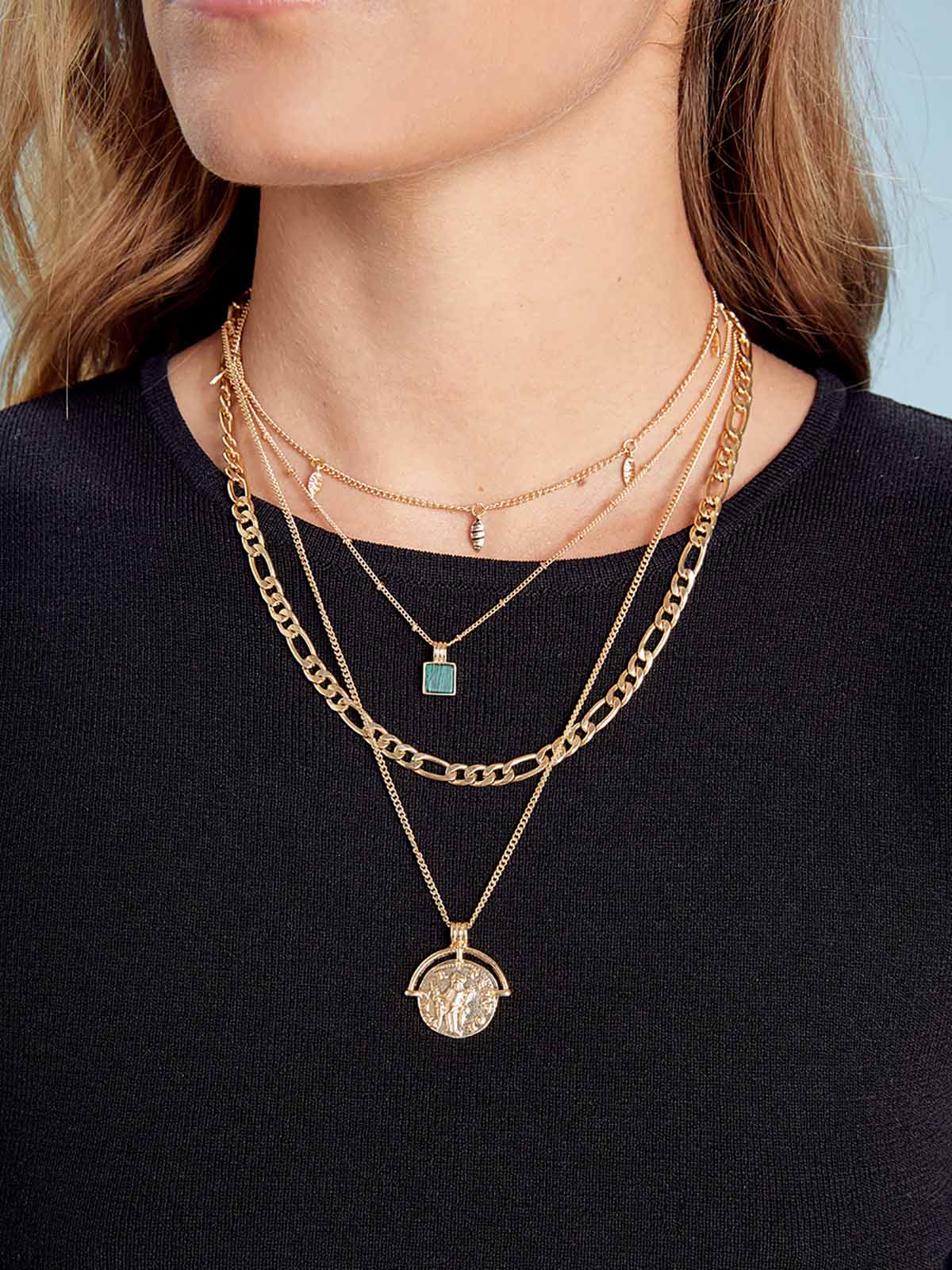 Layer it up with finer chains or wear alone for a considered look. Nearly every outfit can be elevated with neckwear. This necklace boasts a gold-toned layer design with multiple pendants.